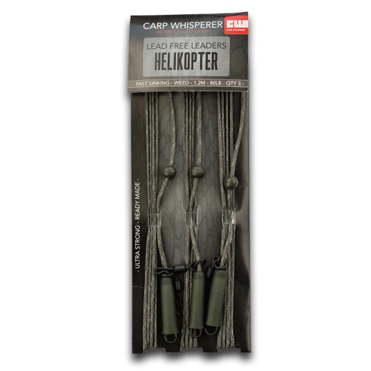 Helikopter Leaders zijn nu verkrijgbaar als kant en klaar karperloodsysteem. Het helicopter system is speciaal ontworpen om te gebruiken op zachte bodems. Het Helikopter systeem voorkomt dat de karper rig door het gewicht van het lood wordt meegetrokken in een zachte modderbodem. Daarbij is dit kant en klaar loodsysteem ook nog een zeer visvriendelijk. Immers bij hoofdlijnbreuk zal de vis zich eenvoudig kunnen ontdoen van het loodsysteem en enkel achterblijven met de karper rig. Wel raden wij aan om altijd een weerhaakloze haak te gebruiken voor een echt visveilig systeem.