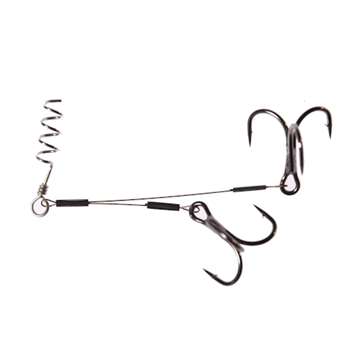 Een handig systeem voor shads! Wil je op ondiep water of op water met veel waterplanten vissen met shads en zonder loodkop. Gebruik dan dit systeem. De wokkel draai je vooraan in je shad. De dreggen plaats je in de buik van de shad. Plaats de dreggen zo dat ze aan beide kanten van de shad komen. De shad blijft dan mooi in evenwicht. De ideale manier om met shads op ondiep of begroeid water te vissen.