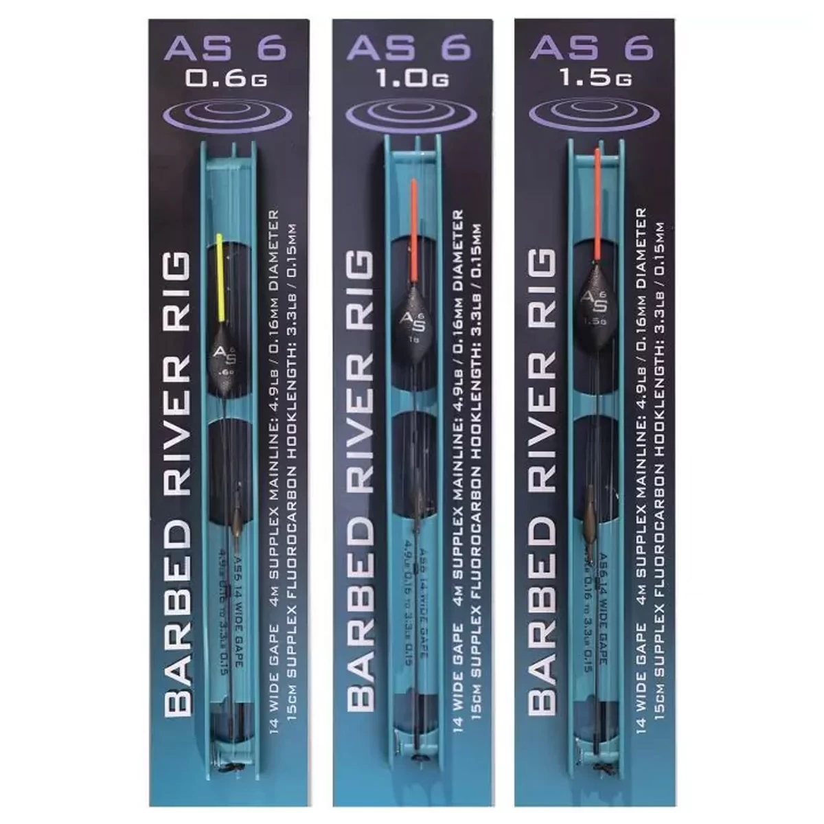 De AS6 River Rigs van Drennan zijn complete tuigjes welke perfect geschikt zijn voor het vissen op langzaam stromende rivieren en vijvers. De AS6 River Rigs zijn verkrijgbaar in verschillende gewichten, de haakmaat en de diameter van de lijn zijn perfect op elkaar afgestemd.