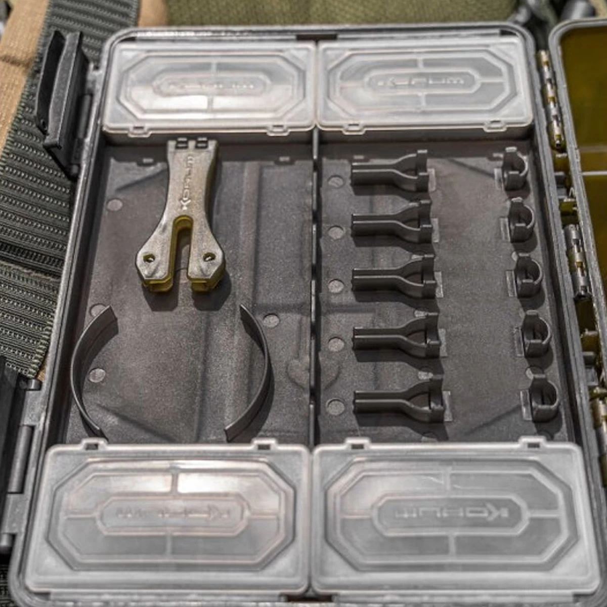 BLOX is een nieuw opslagconcept voor visgerei dat volledig gericht is op iedere barbeel, karper en witvisser! Ontworpen om alles wat je nodig hebt op één goed georganiseerde plek te huisvesten. We hebben BLOX zorgvuldig op maat gemaakt om onmisbare items van end-tackle op te bergen, zoals spoelen met lijn, pakjes haken en accessoires. Er is de mogelijkheid om de speciale BITS BLOX te gebruiken als je de voorkeur geeft aan compartimenten, en om end-tackle in het deksel van de doos te kunnen plaatsen. Je aas tools en schaartje klikken allemaal netjes op hun plaats, terwijl de hoofdbox kan worden aangepast met verdelers om aan je behoeften te voldoen. Indien gewenst kun je ook je RIG BLOX erin stoppen, zodat al je voorgeknoopte onderlijnen beschermd zijn tegen de elementen van buitenaf.