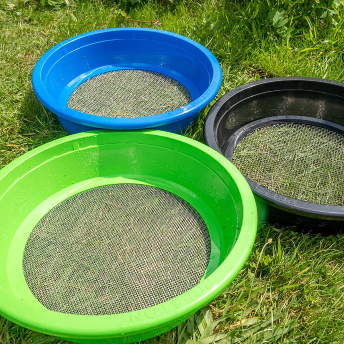 De zeven van Preston Innovations zijn gemaakt van sterk plastic en gaas van roestvrij staal. De zeven kunnen gebruikt worden voor alle soorten aas en voer en passen op voeremmers met een inhoud van 18 liter.